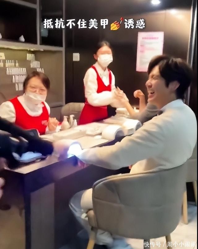在餐厅里,他体验了拉面表演,还为小朋友庆生,体验了美甲服务。