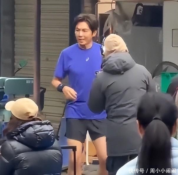 而钟汉良却穿着短袖短裤,在都江堰杨柳河旁晨跑,他的身影在寒风中显得格外单薄,却又充满了力量感。