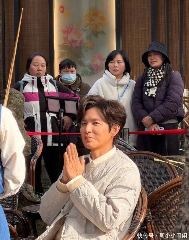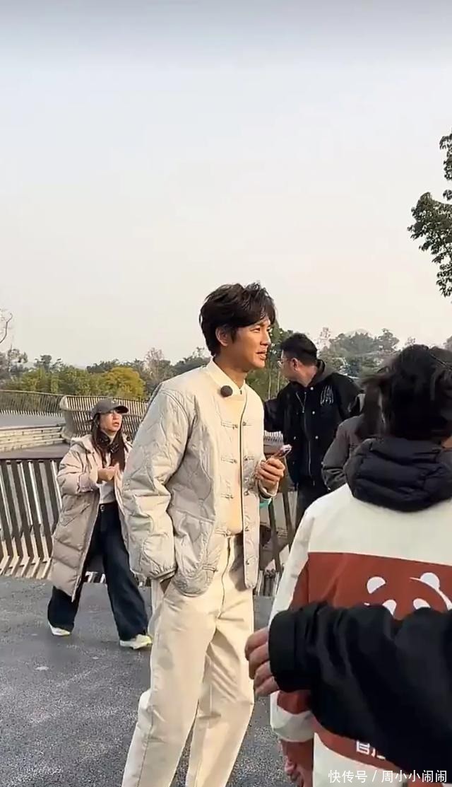 有粉丝认出了他,小声地喊着他的名字,他转过头,对着粉丝微微一笑,然后把手指放在唇上,示意大家保持安静,不要惊扰了熊猫。