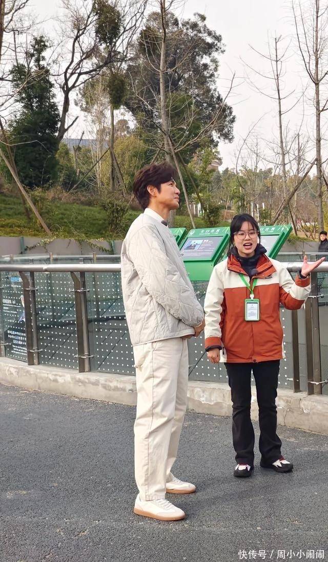 他就像一个普通的游客,对熊猫充满了好奇和喜爱。一位现场的游客说,他没有明星架子,很接地气。